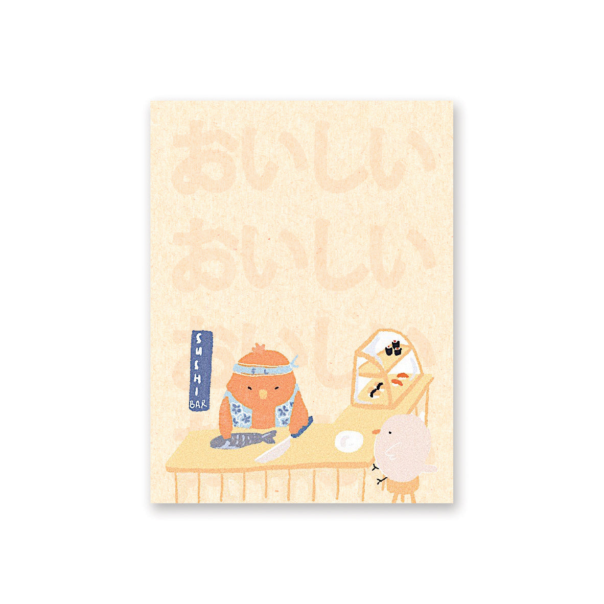 🍣 Visit a sushi stand run by a legendary sushi master who's hard at work preparing fresh and delicious sushi dishes! This birb chef certainly knows what's yummy, and you don't have to travel far to get a taste with this super cute notepad!