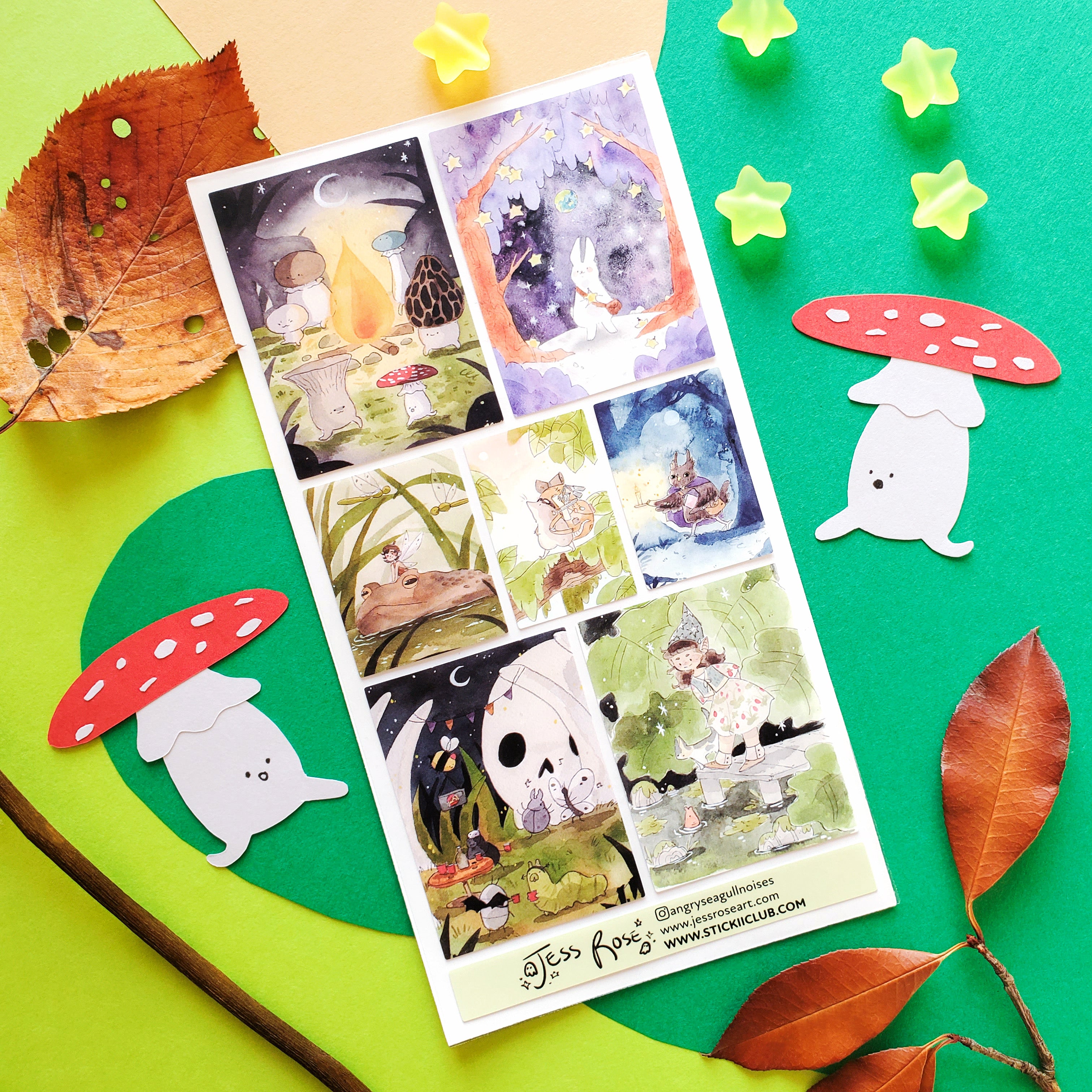 đŸ„đŸ’« As night falls, @angryseagullnoises’ tiny adventurers set off on their moonlit quests! Mushrooms twirl ‘round the campfire, a bunny collects falling stars, and fairies hitch frog-back rides to hidden ponds. Every path leads to magic here—where bedtime is just the beginning of the adventure.