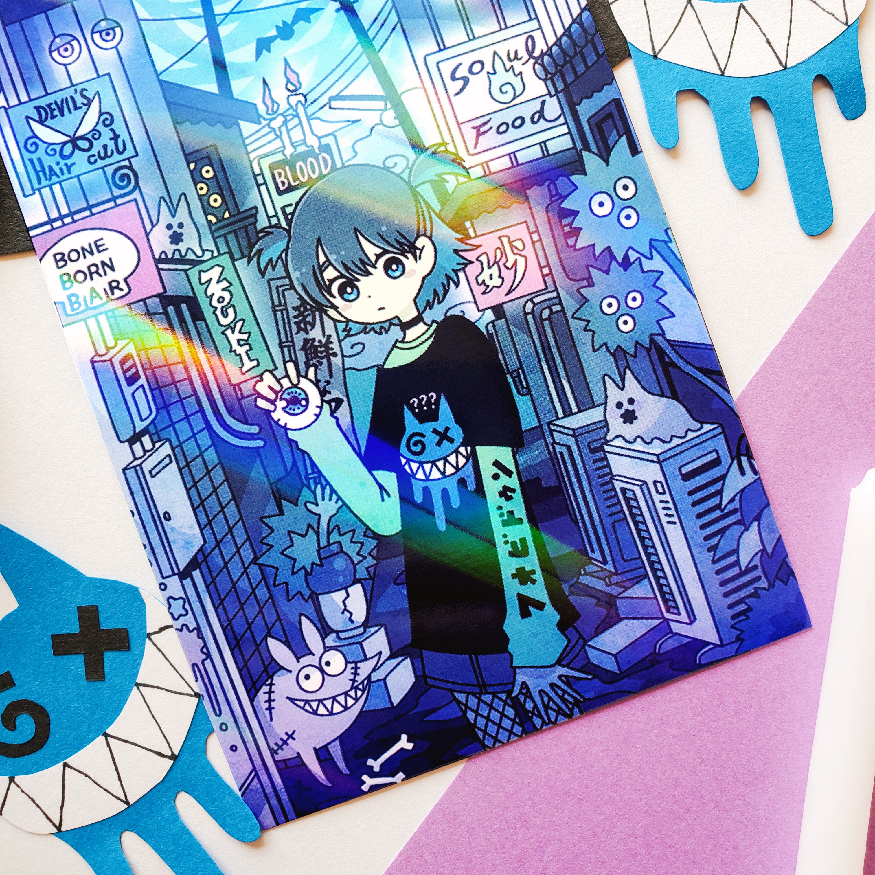 🌃🩇 It’s ghouls’ night out so make sure you’re dressed to impress (yourself) like @garouma’s girl serving spooky street style in this candy-colored postcard. Rocking monster merch, holding an eyeball like it’s the latest accessory, and strolling through a neon-lit alley of the halloweentown of our dreams (or nightmares!)