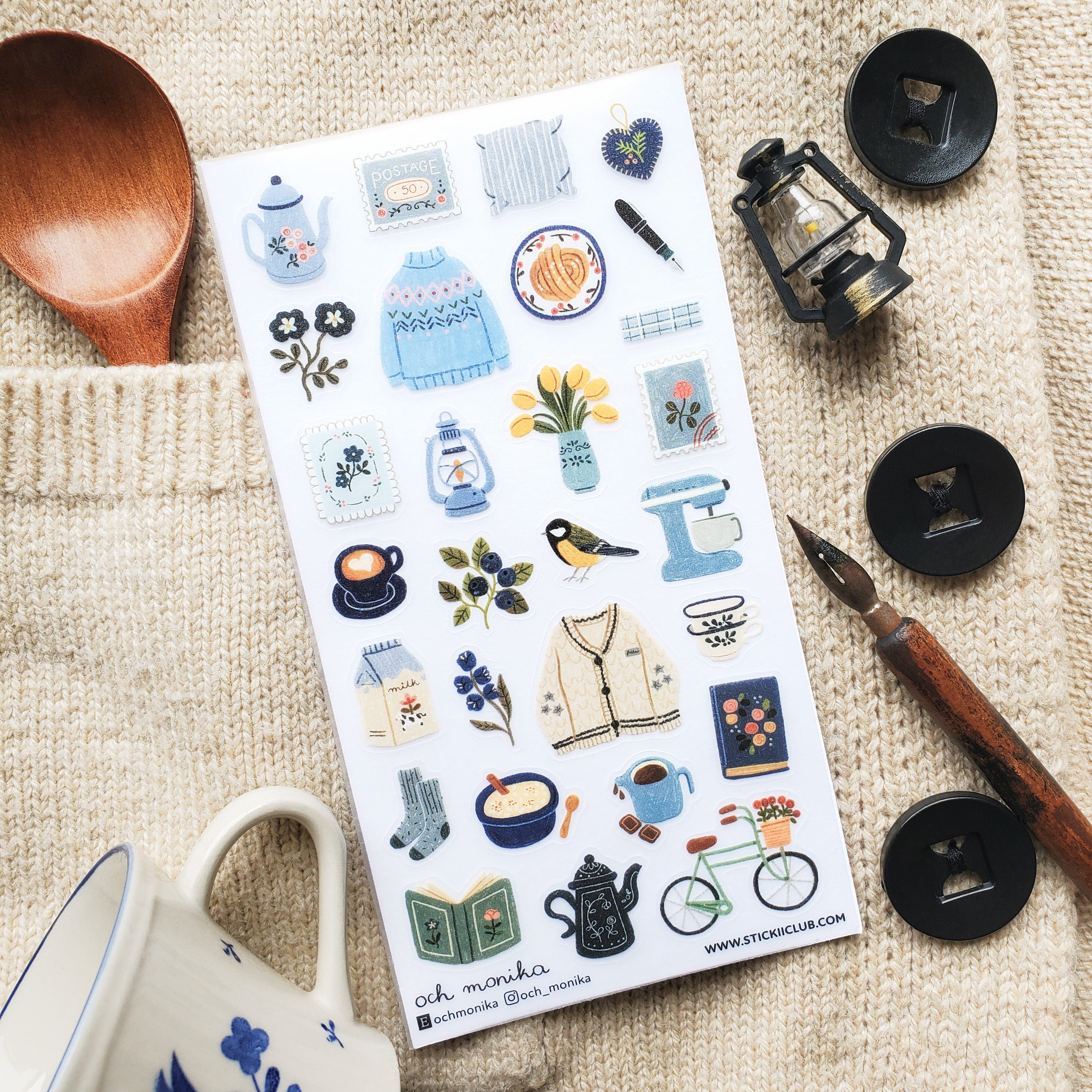 🫖 With warm knits and teapots, brew a cozy daydream with @och_monika’s delightful set. From a soft blue sweater to a bicycle rolling through the garden, these designs invite us to slow down and savor life’s simple pleasures.