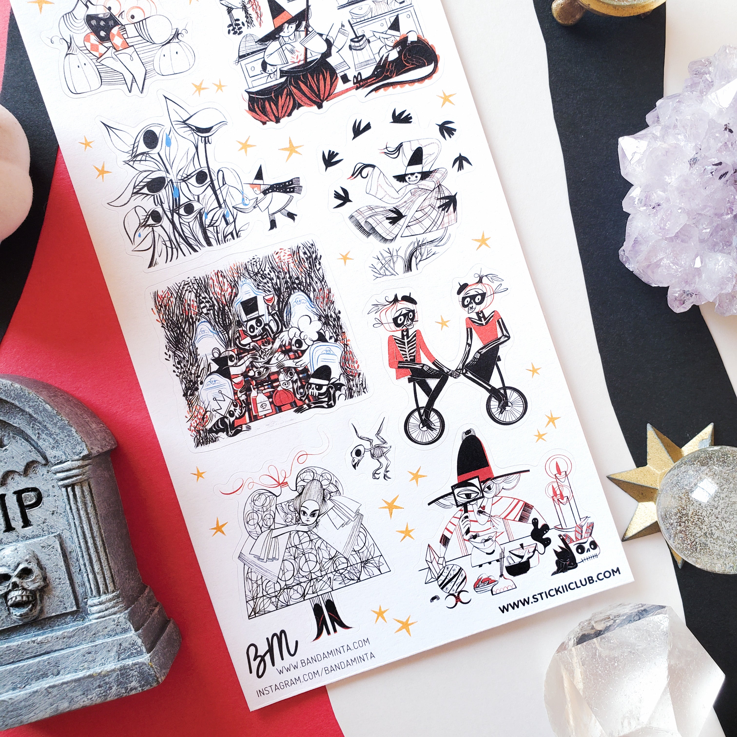 🍂🧙 Grab your (skeleton) crew for a fun fall picnic with this sheet by @bandaminta. Whip up some delights in your kitchen with your cauldron (cookies with curses yum) and then head out to those fields to have a midnight snack. Invite the scarecrow along because we hear it can be a maze… and dude, don’t lose your head over it! (Again).