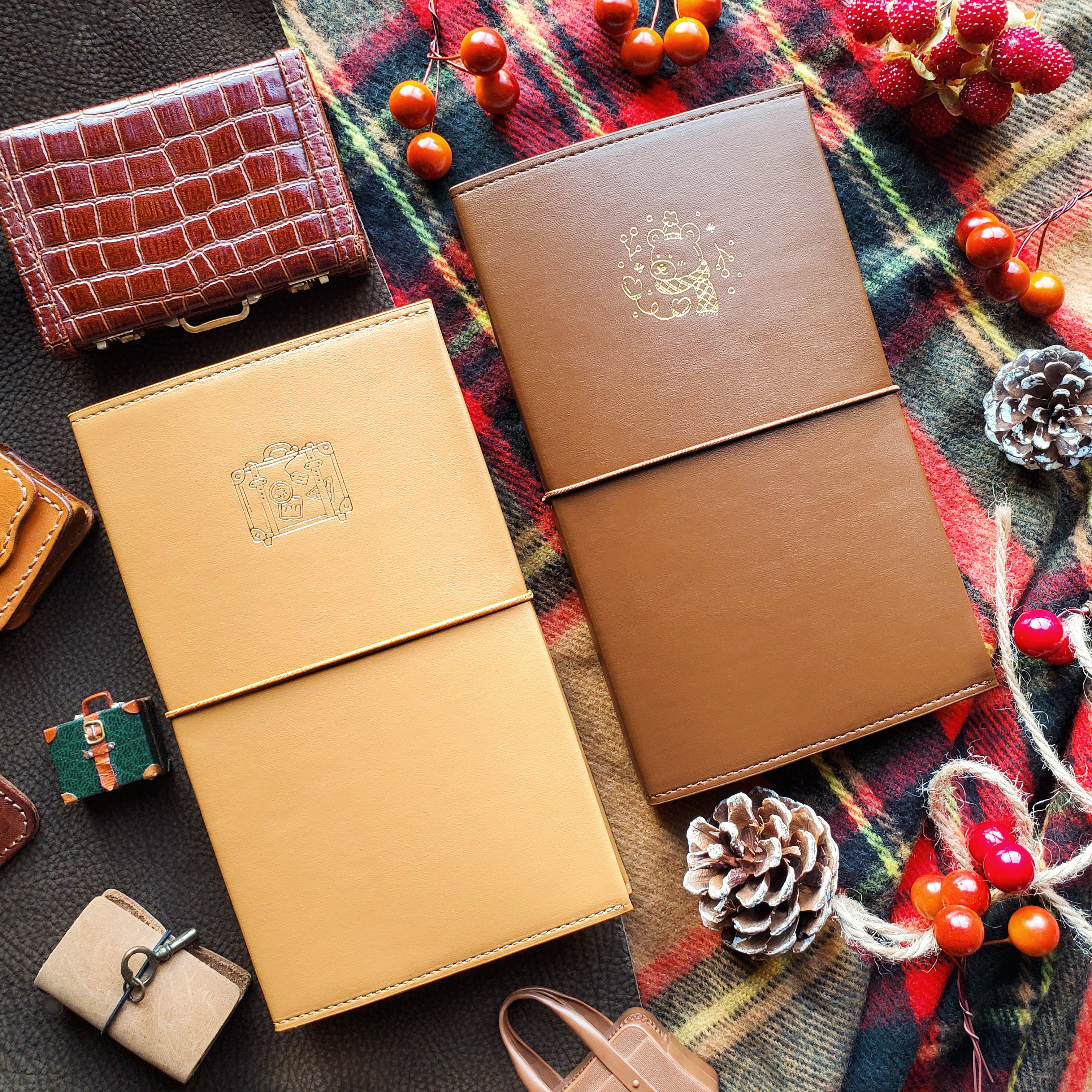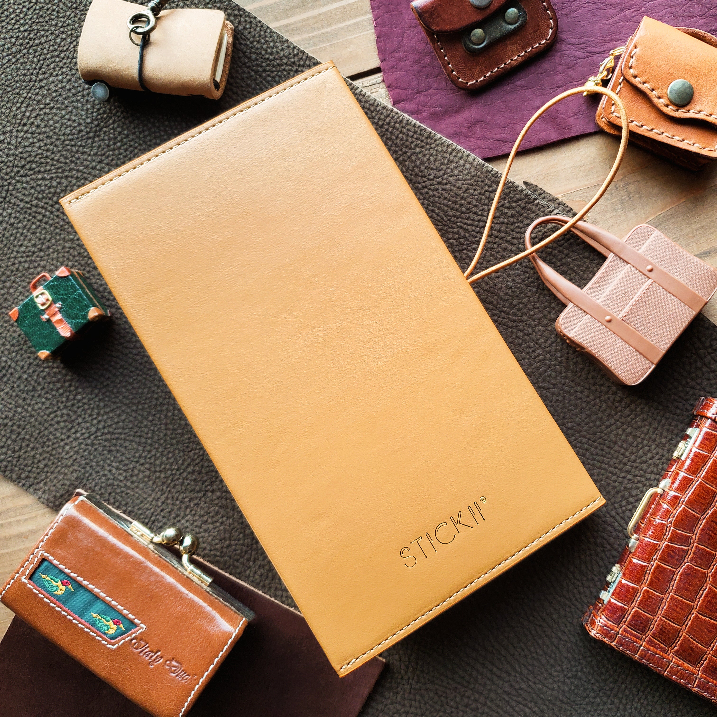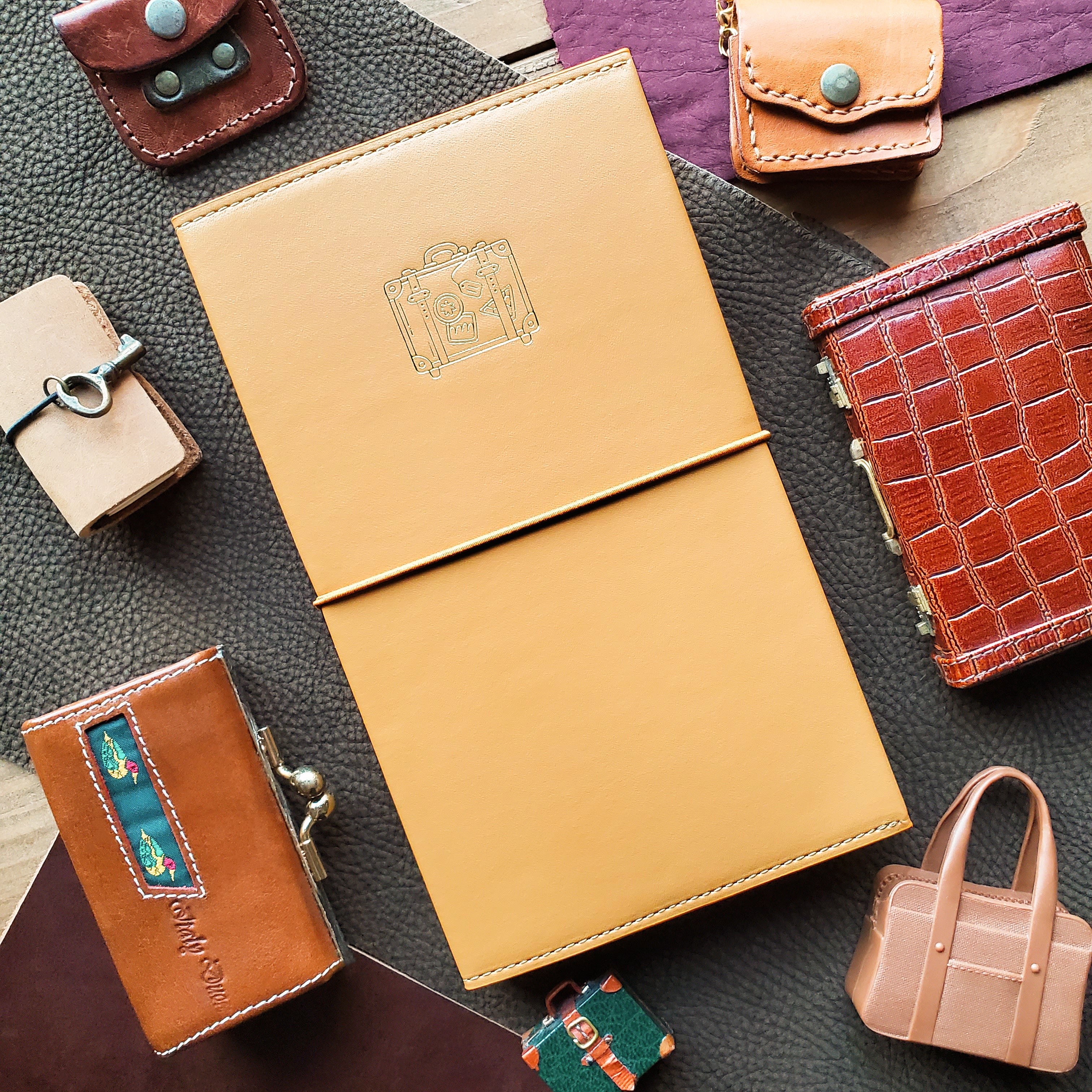 🧳🌍 Ready for Adventure – Soft caramel tan with a vintage-style suitcase design, ready for those who don't want to hibernate! Perfect for dreamers on the go who love collecting memories, moments, and of course… stickers!