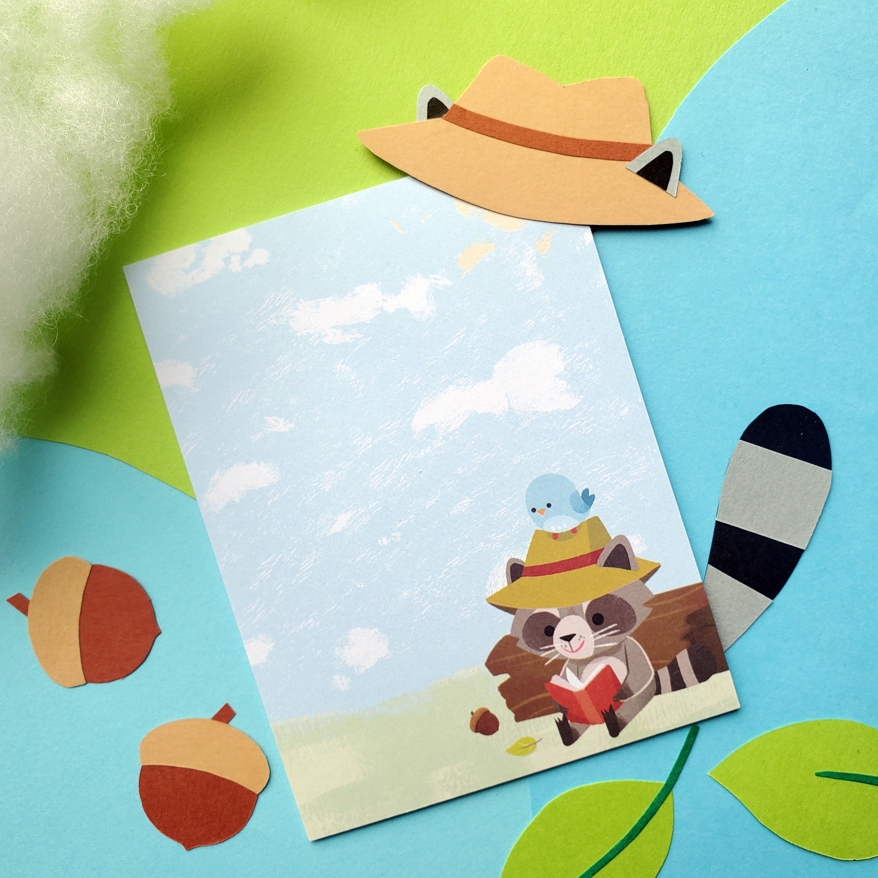 🏕 Grab your bff and head to the great outdoors like this cuddly raccoon who enjoys camping with forest friends. Featuring a sweet raccoon catching up on his favorite book while enjoying nature, @_qingping_ brings us an adorable notepad of this camping cutie.