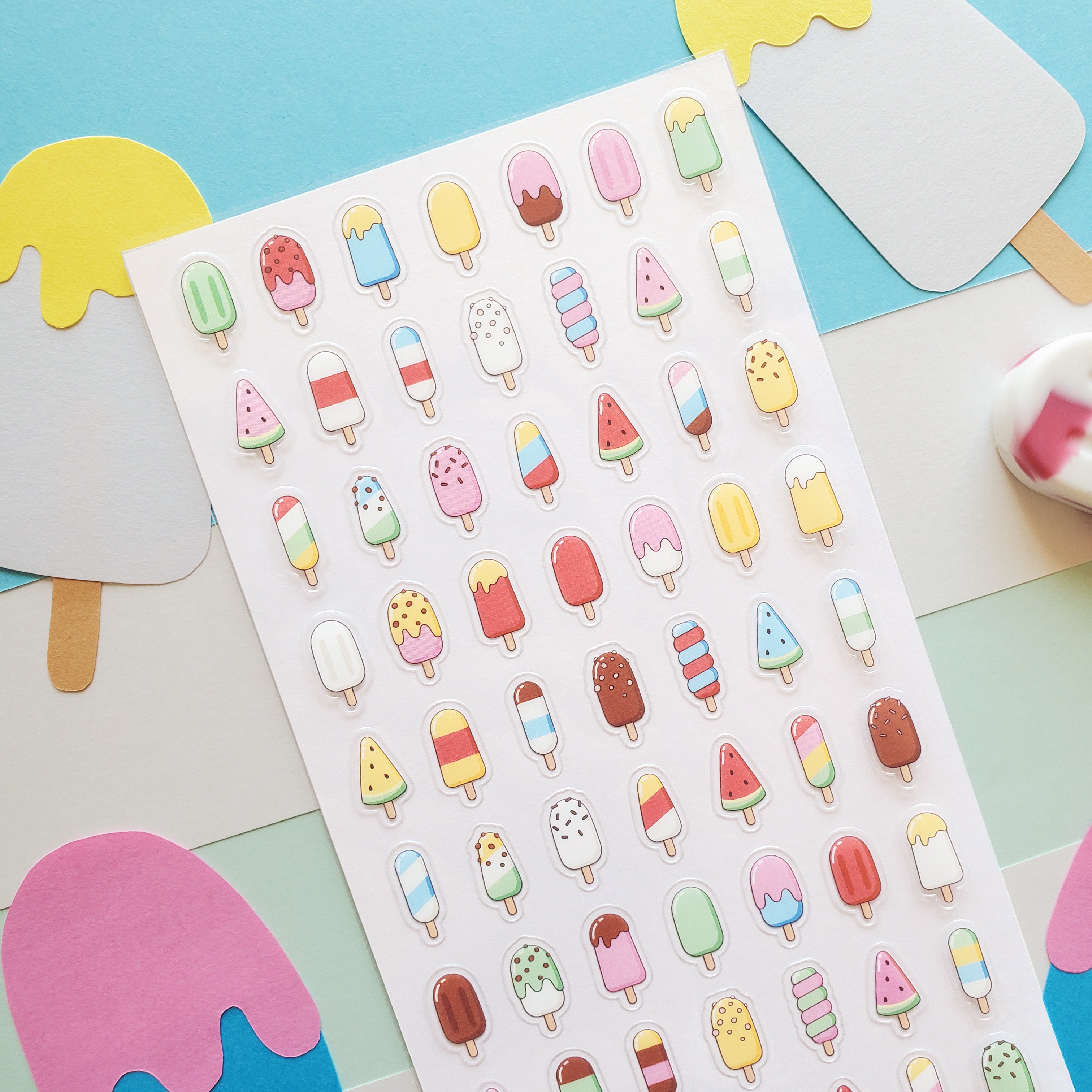 ❄️🍦 Cool off with a rainbow of sweet treats! This sticker sheet is bursting with the cutest popsicles in every flavor and color you can imagine—from fruity swirls to chocolate-dipped delights. Each tiny pop is a bite-sized piece of summer joy, perfect for sprinkling a little refreshment onto your journal, letters, or anywhere that needs a dash of icy fun.