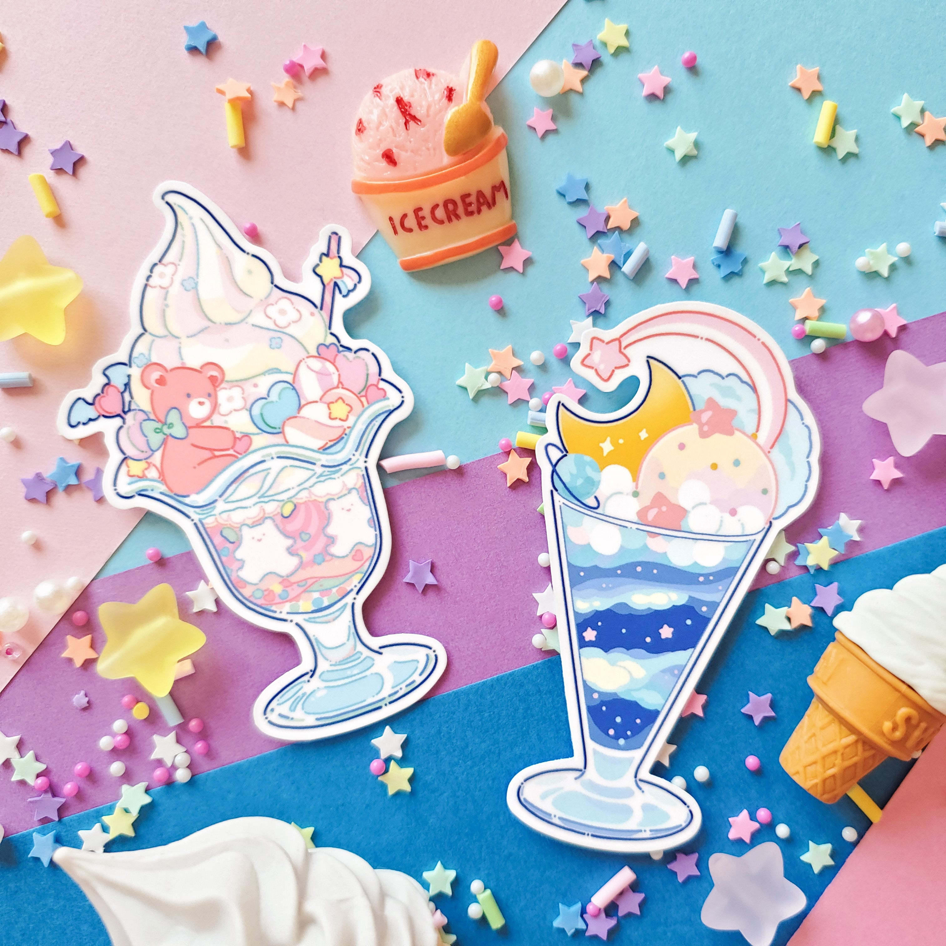 🍦💫 It’s a parfait kinda day! @hiro046k delivers with this dreamy decal sticker set. Enjoy a whimsical parfait featuring a cuddly teddy bear surrounded by candy hearts and sparkles, plus a celestial parfait filled with stars, clouds, and cosmic swirls — the perfect any time treat!