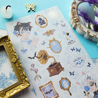🦇🦋 Come on in and explore this charmingly eerie abode with this lovely pastel sheet by @morganebrretshop that perfectly combines delicate with spooky. Get ready to encounter haunted teapots, bats, and lots of butterflies! What else is lurking behind these walls?