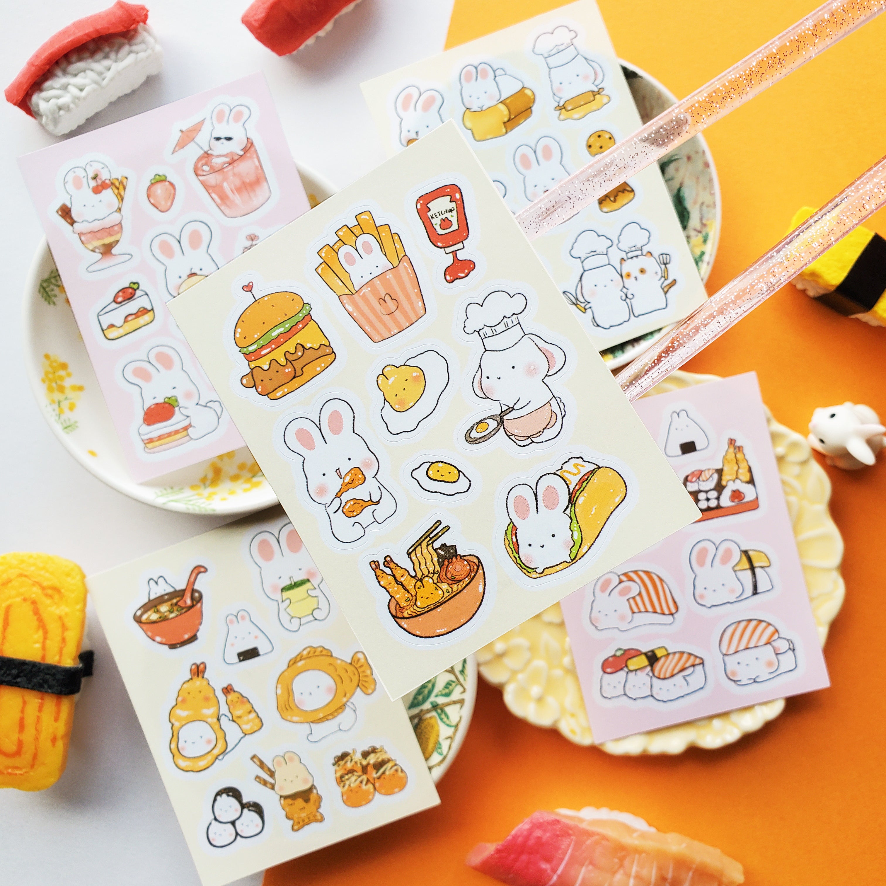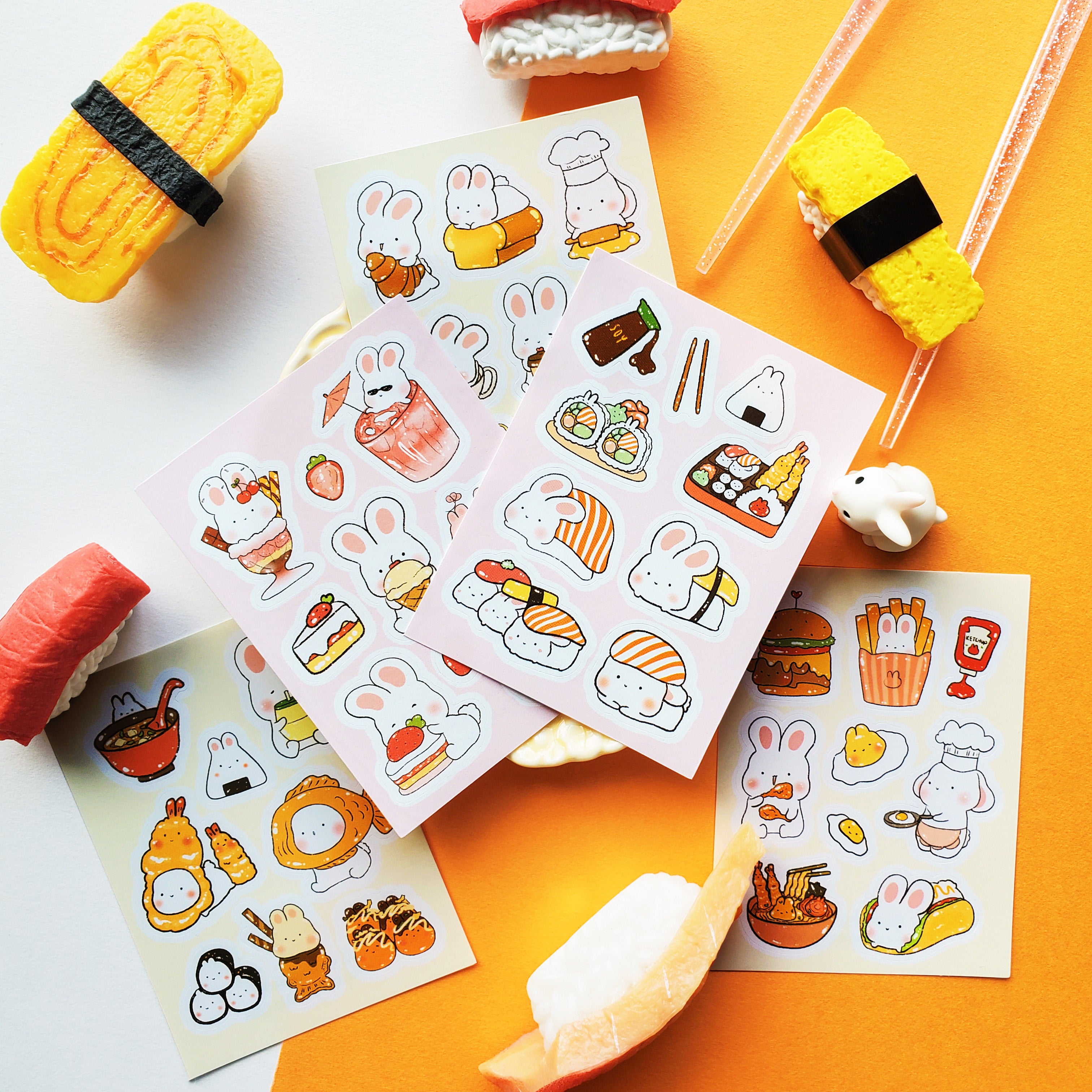 🍰🐰 Get ready to feast your eyes on a deliciously adorable snack attack with @goodnightarts’ bunny-themed food party! These cutie-patooties are serving up sweet treats, savory bites, and everything in between. From bunny-sized sushi rolls to fluffy pancakes and crispy fries, every sticker is a bite-sized delight. Whether they’re cooking up a storm or munching on their favorite meals, these bunnies are sure to hop right into your heart.