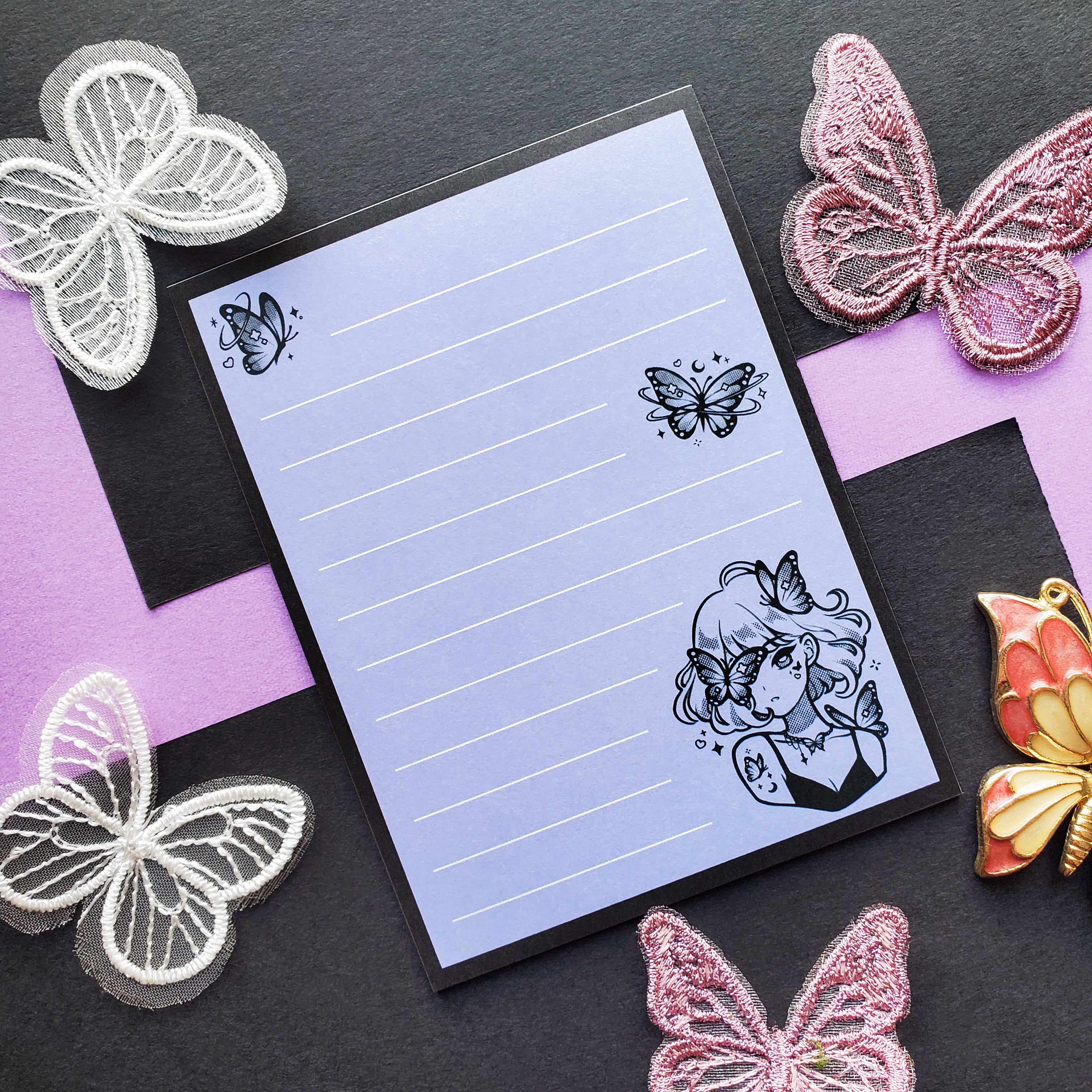 🦋💜 Flutter into a dreamy day with @fresh_bobatae’s enchanting mini notepad, where cosmic butterflies and sparkly vibes surround a pastel-punk muse. With swirls of stardust and wings that dance across the page, every note feels like it’s drifting through a magical, lavender-tinted universe. Perfect for scribbling thoughts, doodles, or little secrets that deserve a touch of celestial charm!