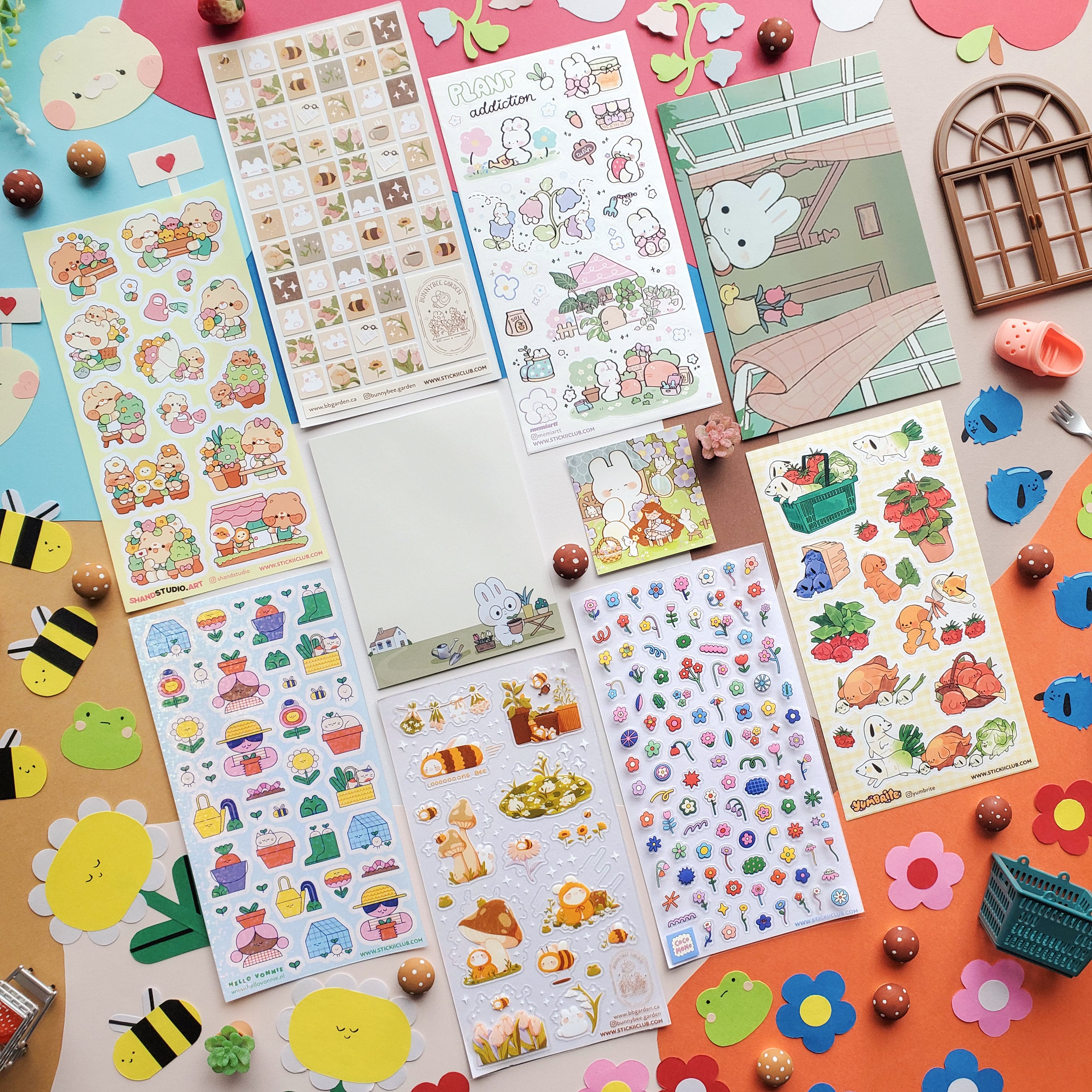 🐝 Buzz on over to @bunnybee.garden’s kawaii garden, where bunny-bees flutter through fields of flowers. From watering plants and zooming past blooming petals to snoozing in the grass, this sheet is bee-yond adorable.