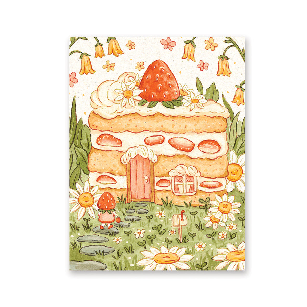 🍓🏡 Step into @hwainio’s dreamy garden, where the sweetest little cottage is made of sponge cake and strawberries! Beneath a swirl of whipped cream and blooming daisies, a tiny friend returns home after a berry-picking adventure. Every corner of this cozy world feels like a fairytale dessert—soft, sunny, and full of charm. Perfect for sending a note or simply savoring a slice of whimsy!