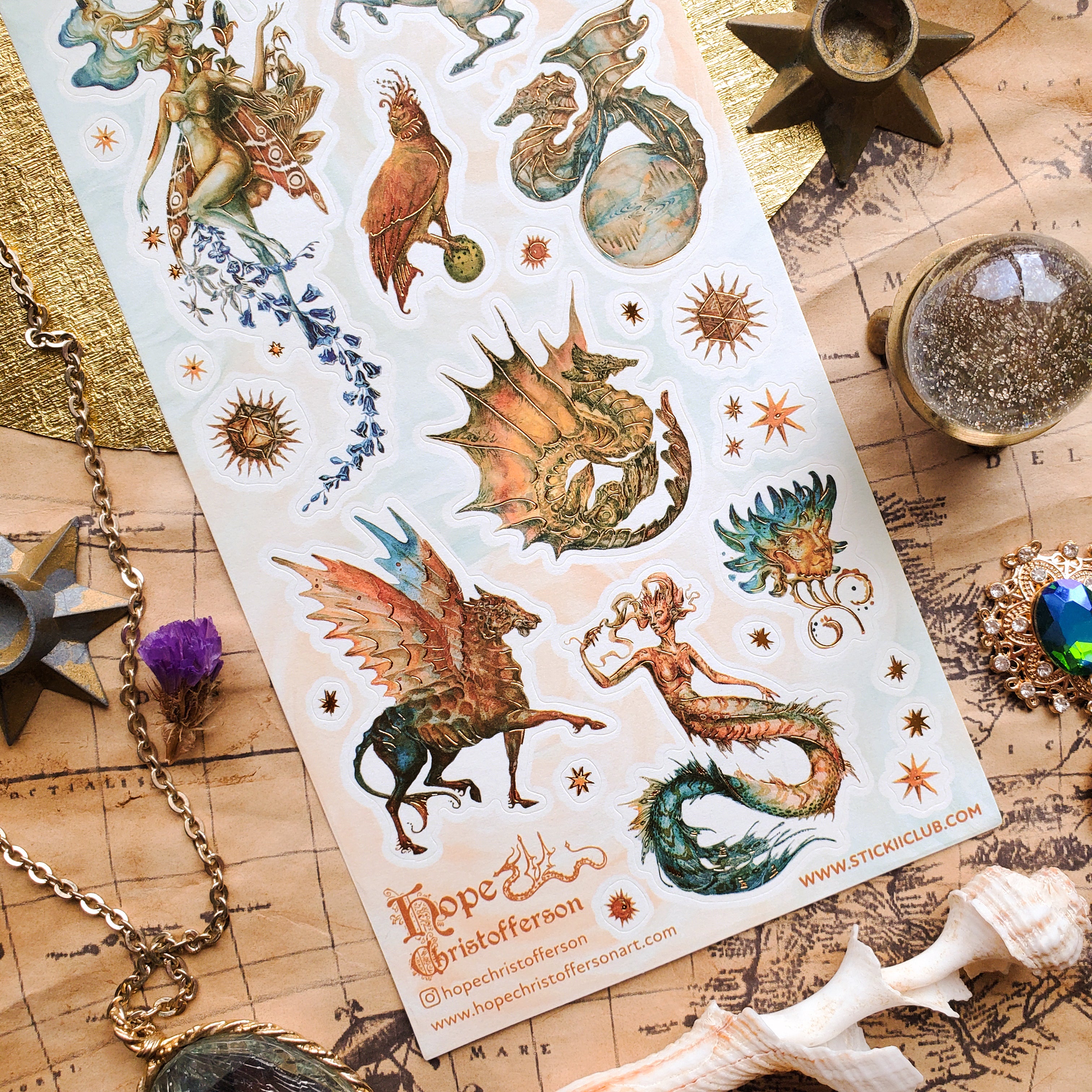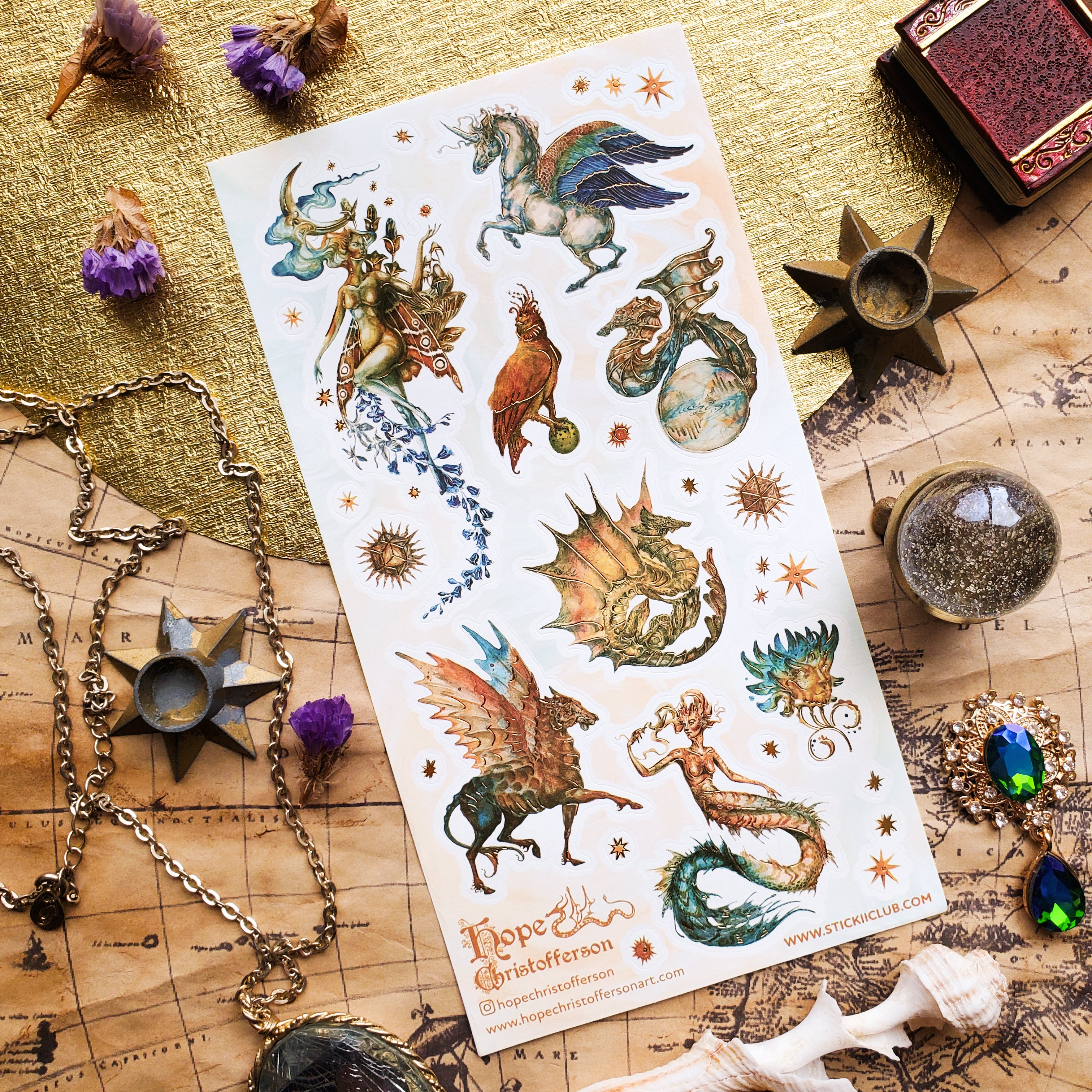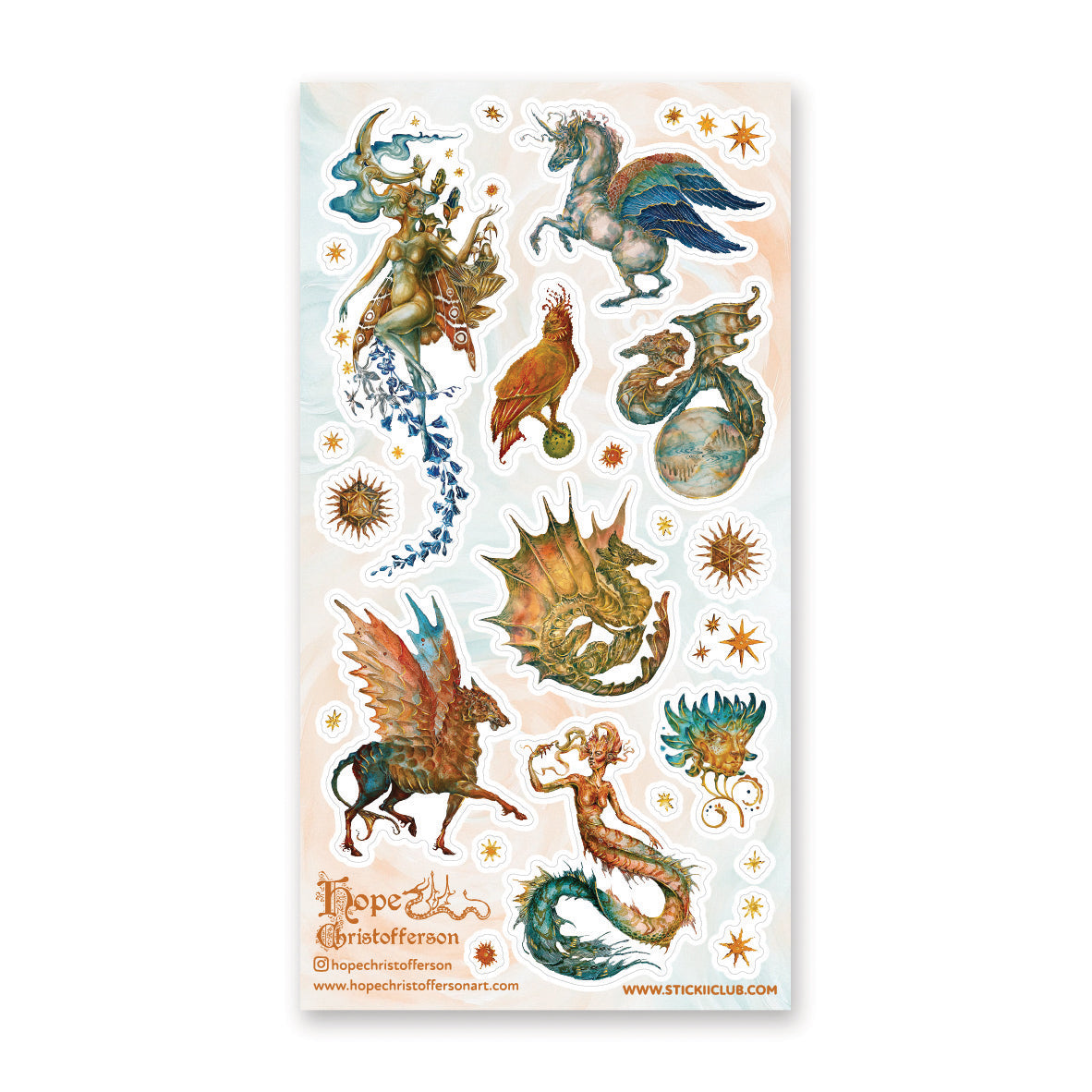 🦄🐉 Soaring through starlit skies and shimmering seas, @hopechristofferson’s mythical beings awaken a realm of untamed magic and ancient wonder. From a winged alicorn and celestial dragons to radiant sirens and cosmic creatures, get ready to weave epic fantasy tales and fill your pages with legendary beauty with this breathtaking sheet.