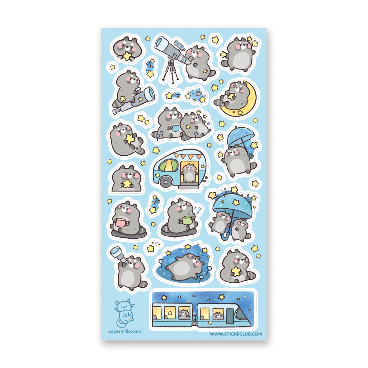 🌟🦝 Adventure calls, and these chonky little stargazers by @papermilio are answering, with snacks packed and eyes on the sky! From peeking through telescopes and wishing on shooting stars to camper trips, and umbrella strolls beneath twinkly skies, these cosmic cuties are following the stars—wherever they may lead.