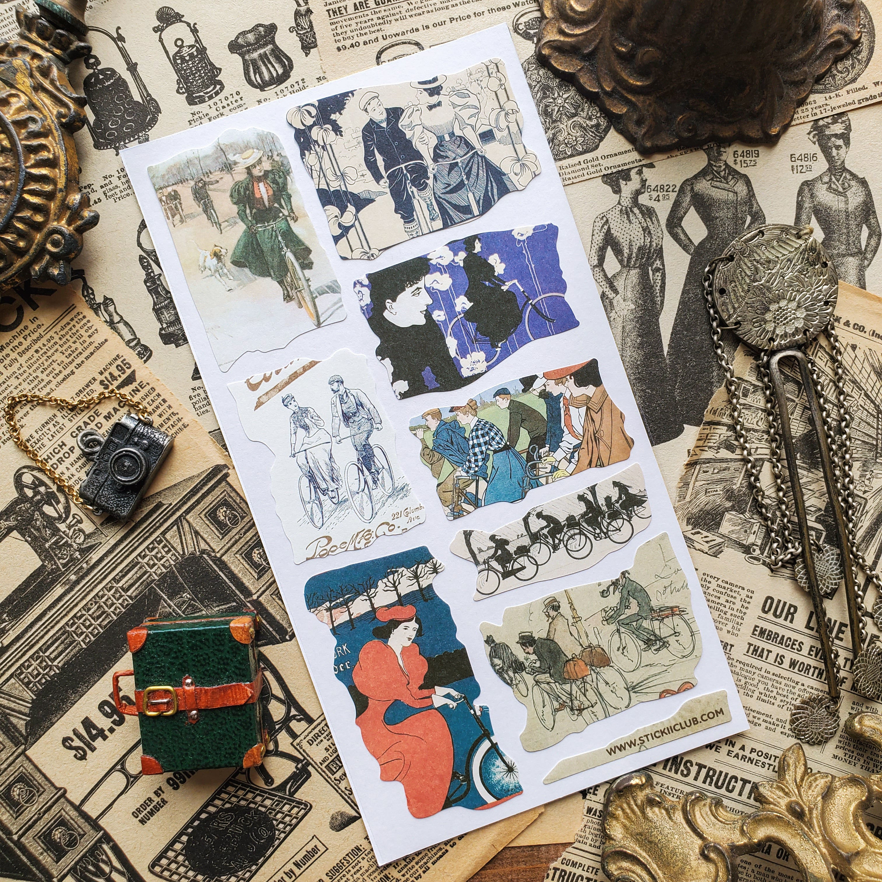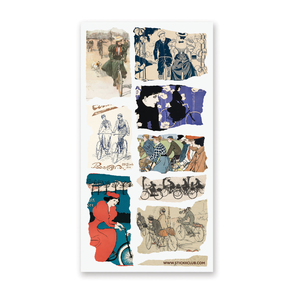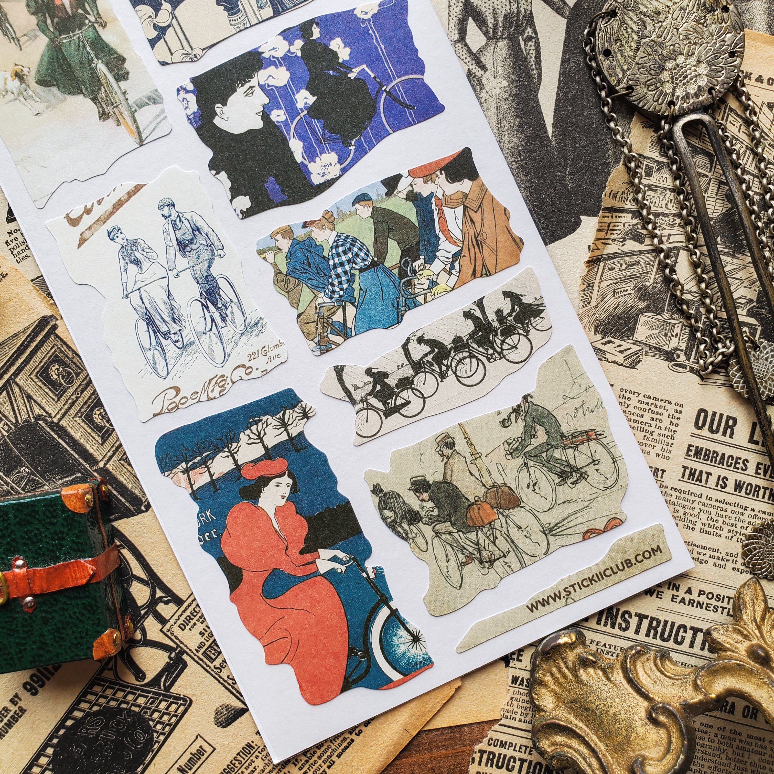 🚲 Join us for a leisurely ride with this sheet featuring riders in their finest vintage attire and classic bicycles. A timeless pastime that has captivated through the ages, these vintage illustrations evoke memories of pure, unbridled joy!