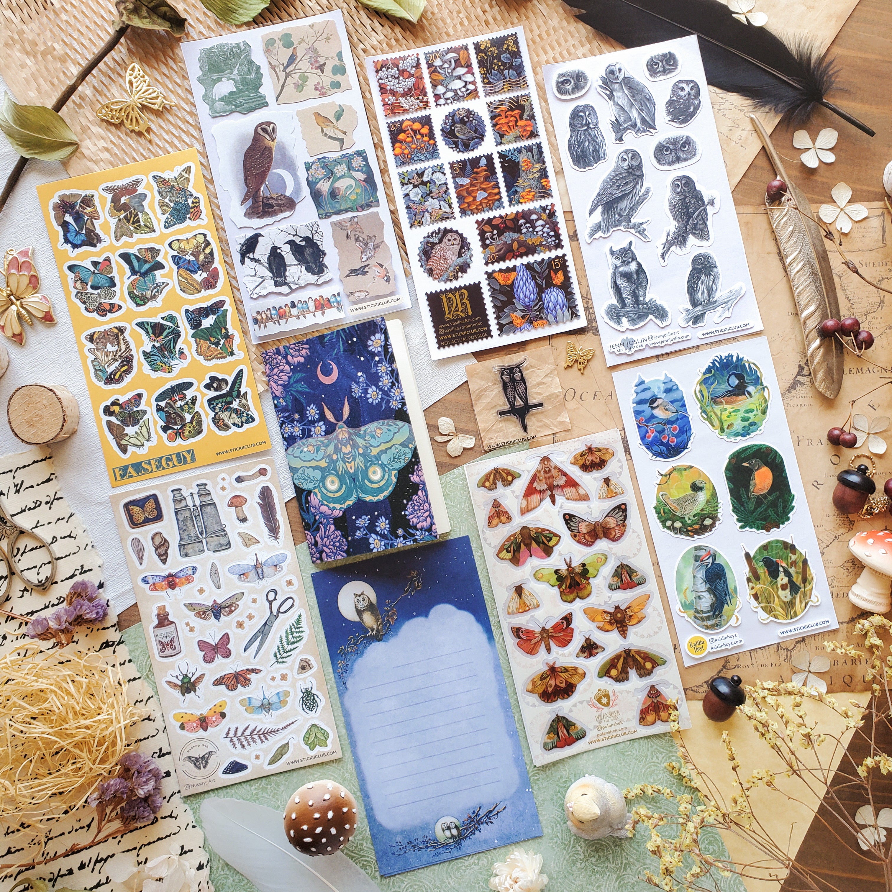 🐦 @kaitlinhoyt brings us little windows to wilderness, where feathered friends perch through seasons and time. Each sticker invites you into a different wild world—from snowy chickadee mornings to cattail marshes at dusk.