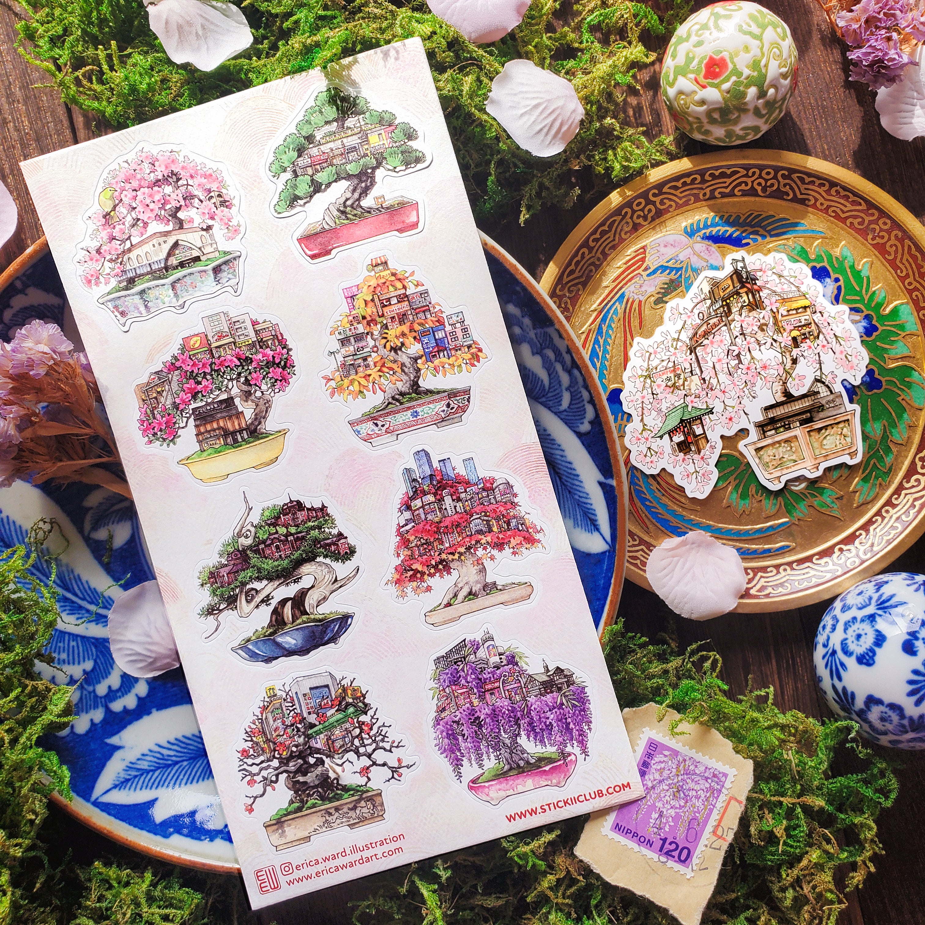 🌳 @erica.ward.illustration’s designs blend urban landscapes with the ancient art of bonsai. Each one tells a story of concrete jungles transformed into blooming sanctuaries — from cherry blossoms cascading over train stations to wisteria-draped shopping districts.