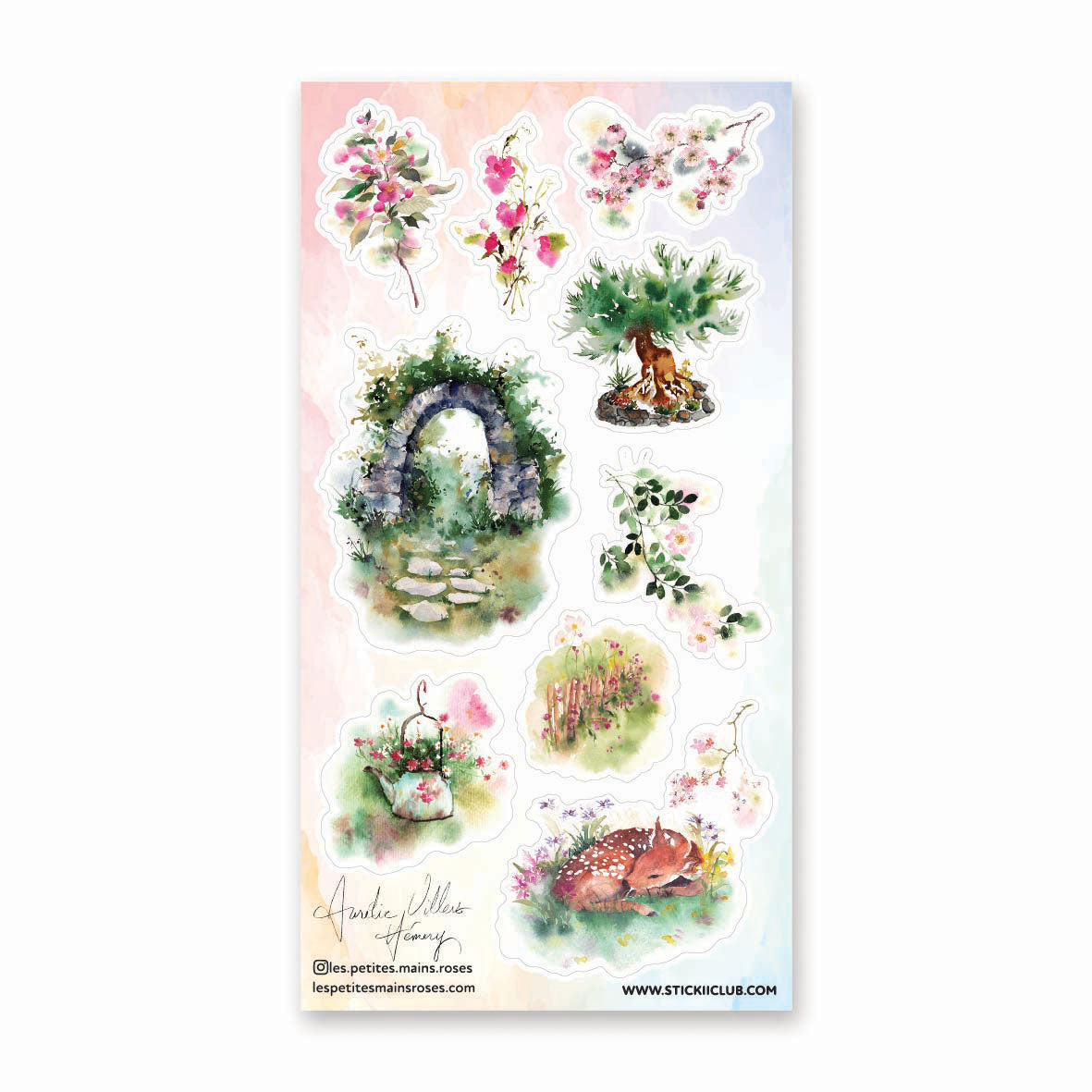 🌸🦌 Wander into a storybook garden painted in dreamy watercolor hues with this beautiful set by @les.petites.mains.roses. Delicate blossoms unfurl in shades of blush and rose, cherry branches drift on a soft breeze, and winding vines frame secret corners waiting to be discovered.