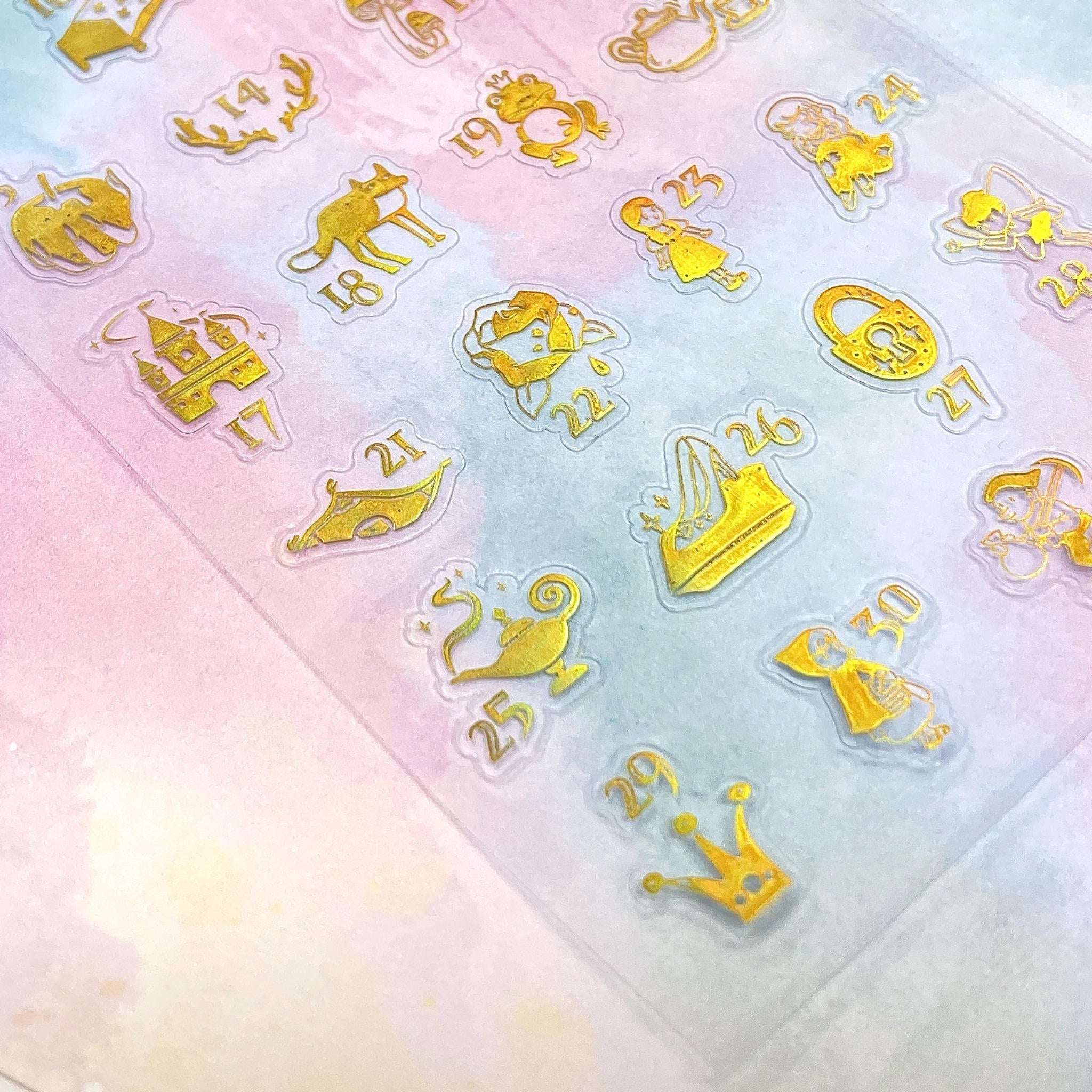 ¡Manifiesta fantasía y asombro para cada día del mes con estas pegatinas numeradas doradas!