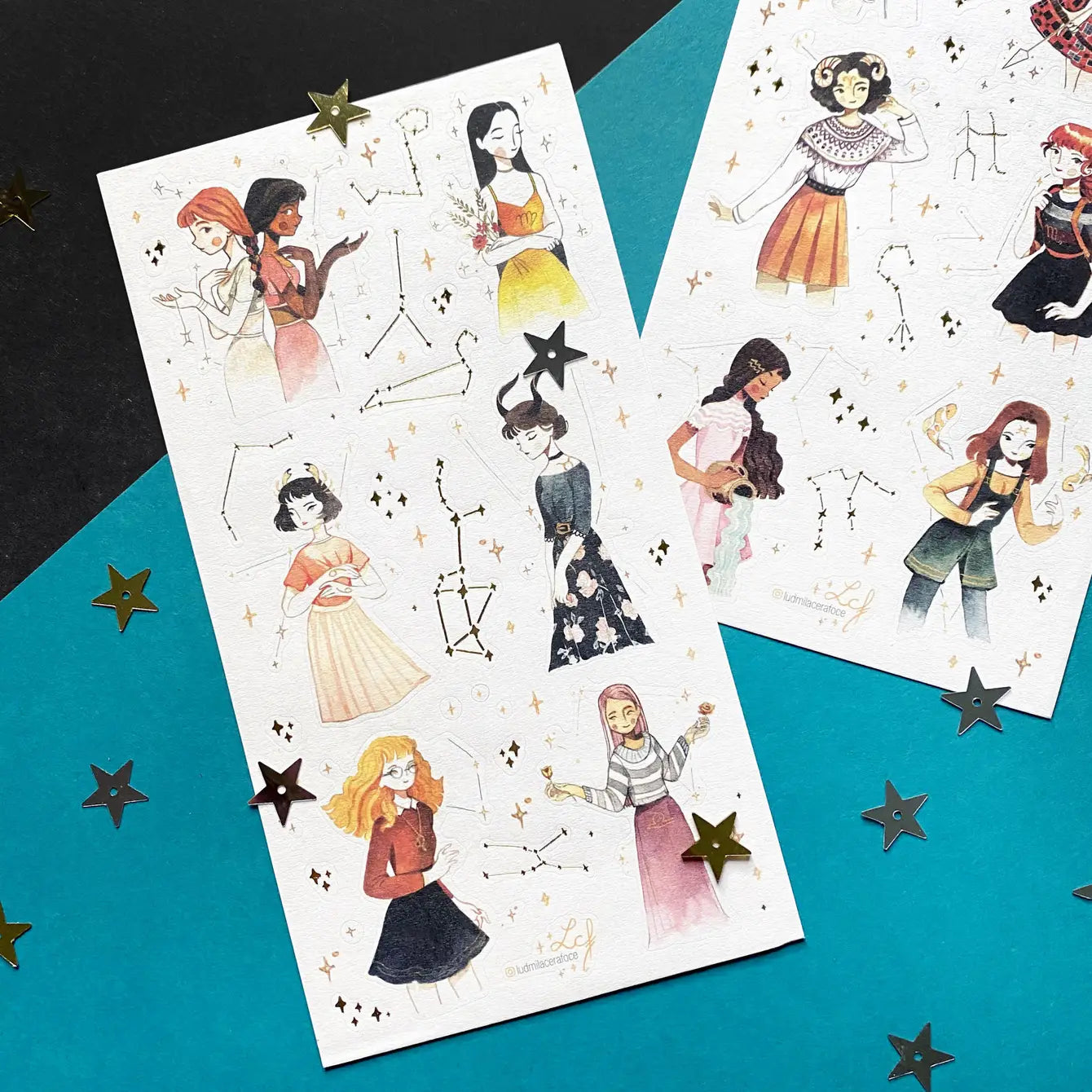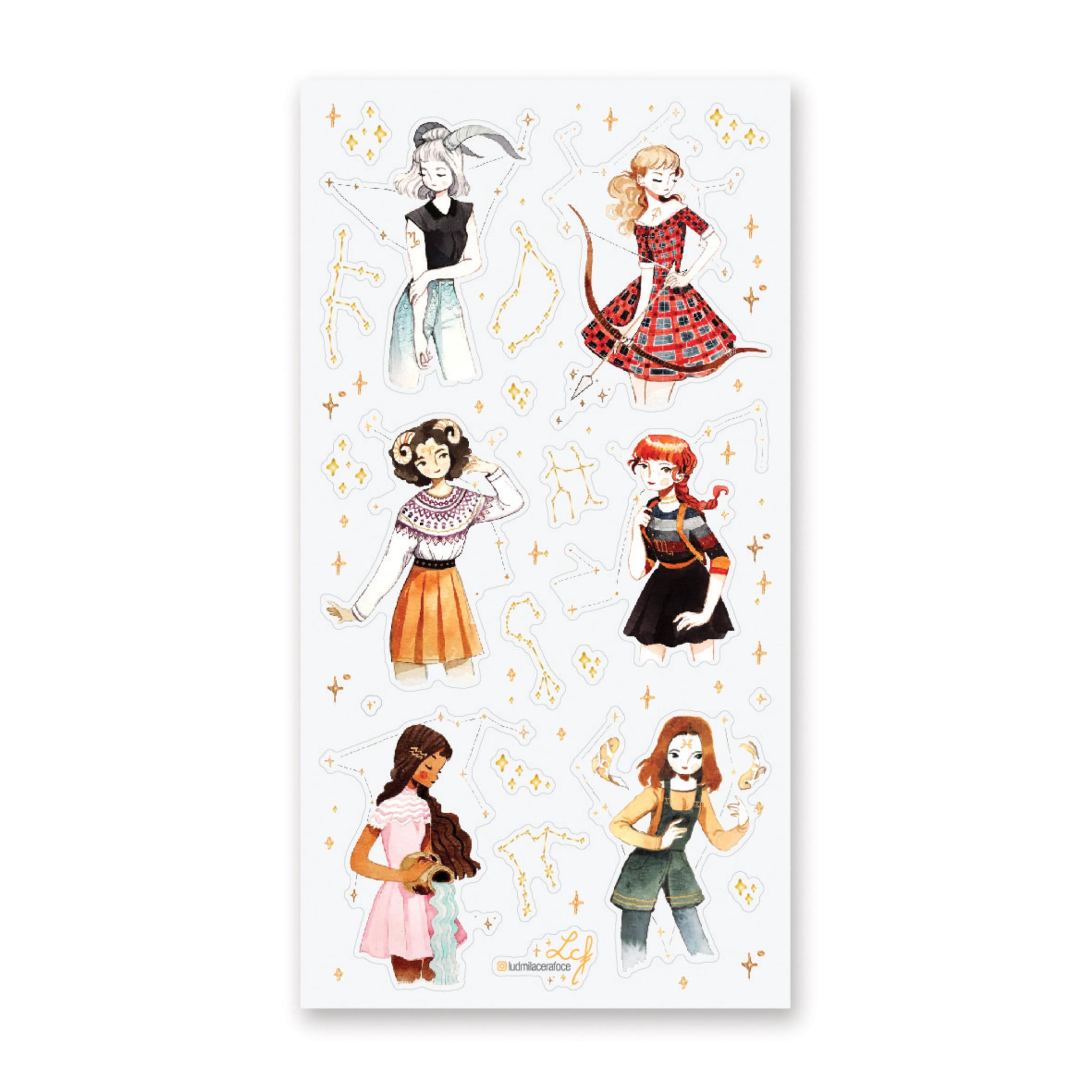 ¡Una hoja que representa los signos del zodíaco capricornio, sagitario, aries, escorpio, acuario y piscis!