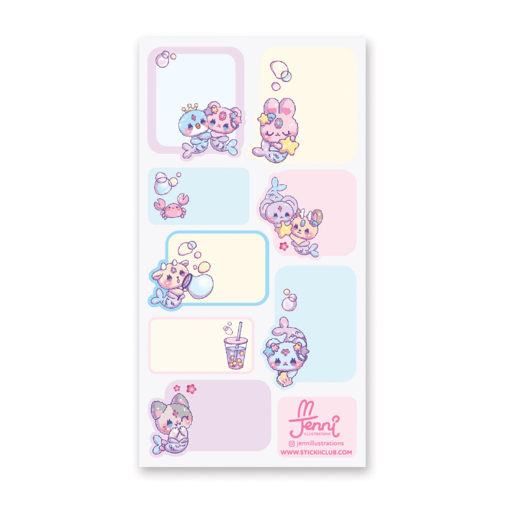 ¡Adorables etiquetas en colores pastel con amigas peludas que son sirenas! 🧜‍♀️🐱