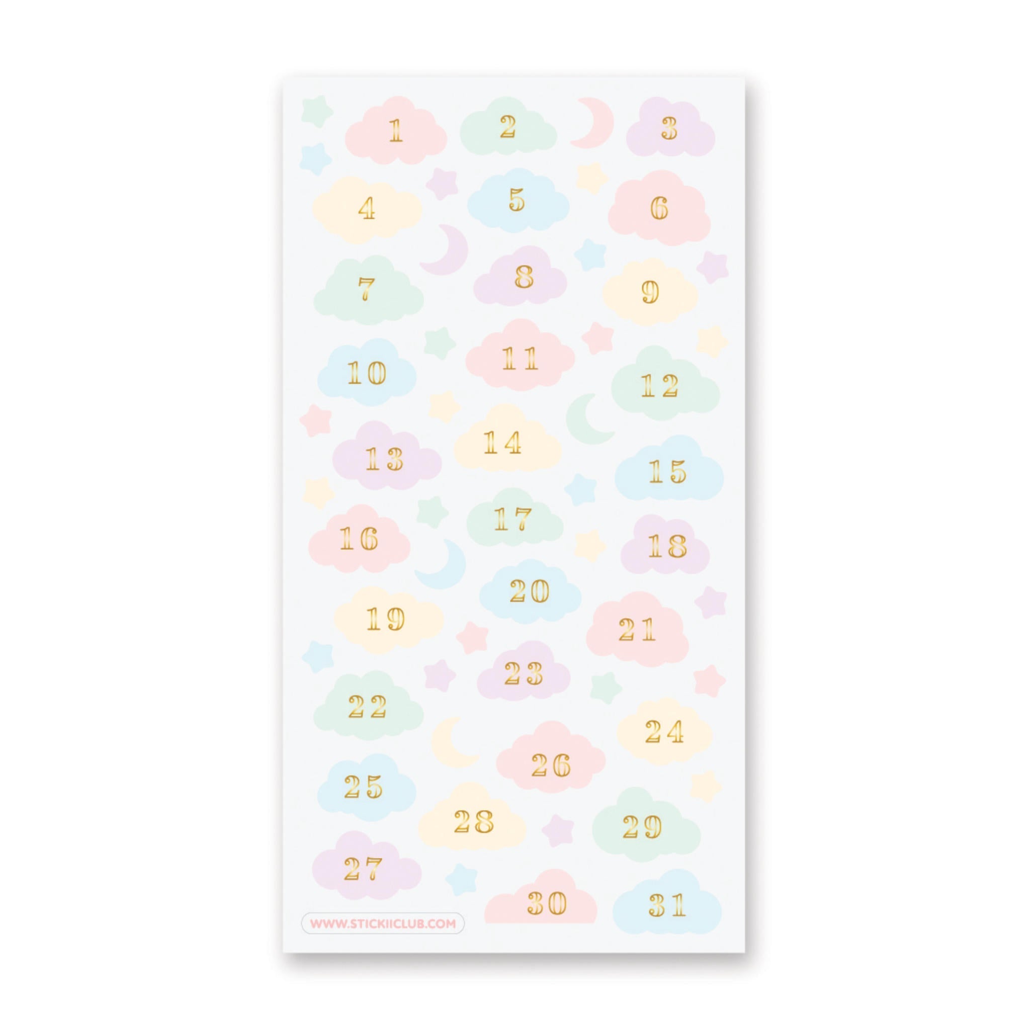 ☁️ Perfecto para etiquetar y decorar tus páginas, te traemos un conjunto de nubes pastel numeradas para el calendario o cuenta regresiva diaria más lindo. ✨