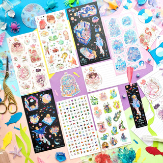 💎 Now you might be wondering how this city is powered, using these stunning aquatic crystals by @nataliescar.art of course! Adorned with ocean flora and fauna and sparkling in gold foil, these watercolor crystals are charged up and ready to infuse your pages with a touch of ocean magic.