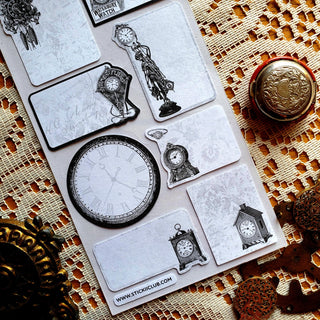 El tiempo no espera a nadie, pero estas etiquetas no van a ninguna parte. Se incluye una hoja de pegatinas. Recubrimiento superior: Ninguno Capa adhesiva: Papel Capa de respaldo: PET transparente Tamaño: 9x17cm