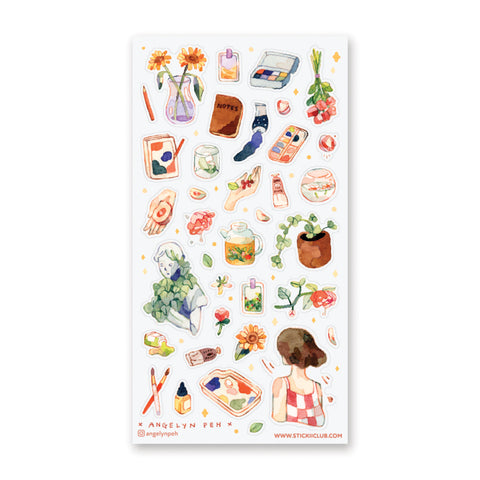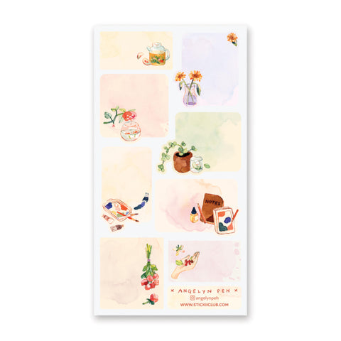 🎨 Healthy living means taking breaks and doing things that we love, like having a cup of floral tea, tending your plants, or doing some watercolor painting, captured here in this sheet by