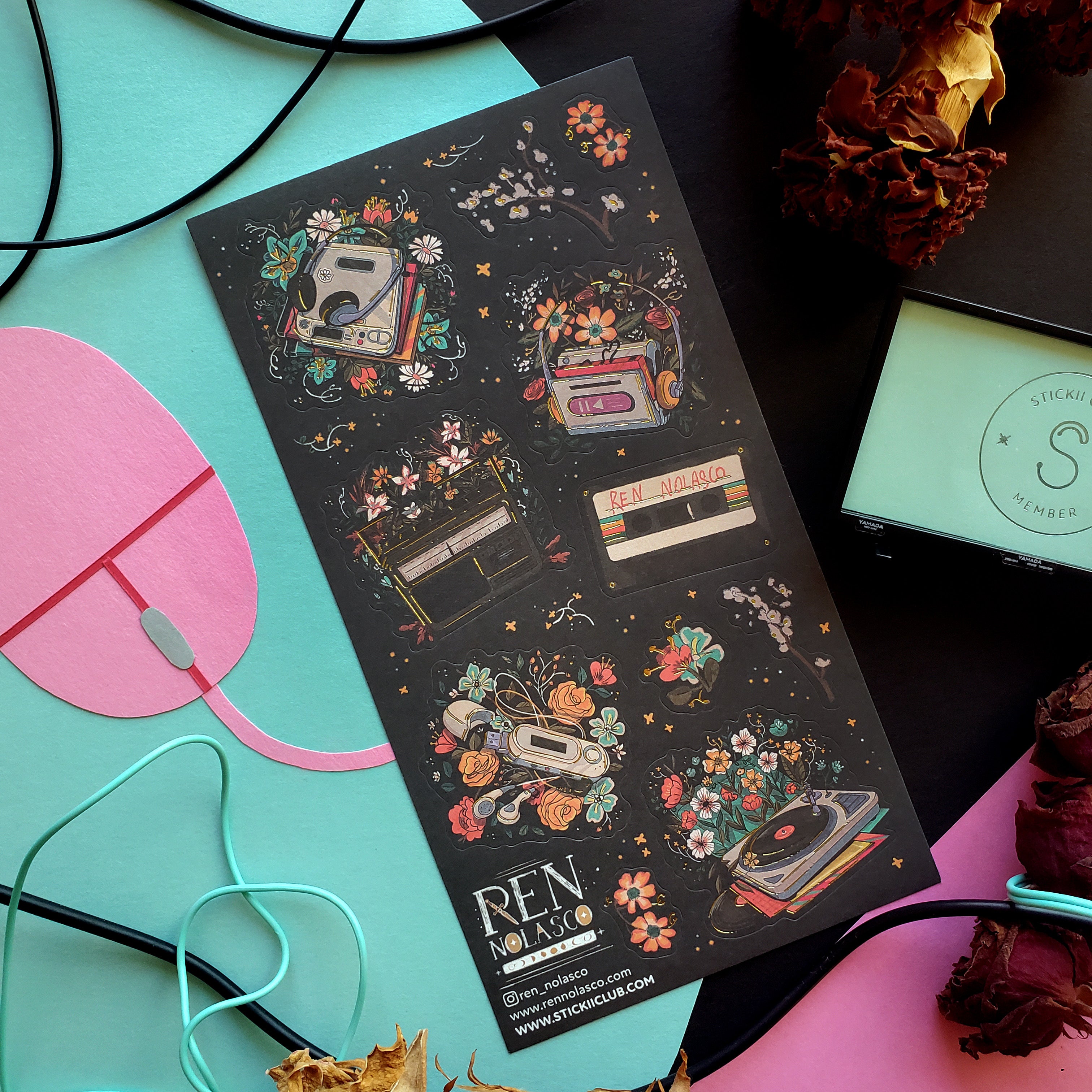 đŸŽ¶đŸ’ Get ready to pump up the jams with @ren_nolasco’s slammin’ sheet featuring retro music tech and groovy flowers. From cassette tapes to CD players, boomboxes to vinyl players—this righteous set has everything you need to boogie down all night long (đŸŽ¶all nightđŸŽ¶)