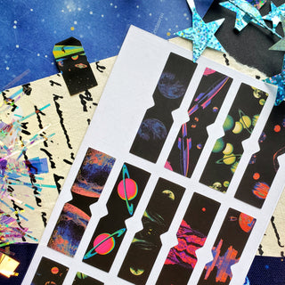 🪐🌟 If you're a fan of everything celestial, you'll love this set of space tabs. They feature a variety of neon planets that perfectly represent the awesomeness of outer space. Just fold and press them onto your page to add some spectacular cosmic vibes.