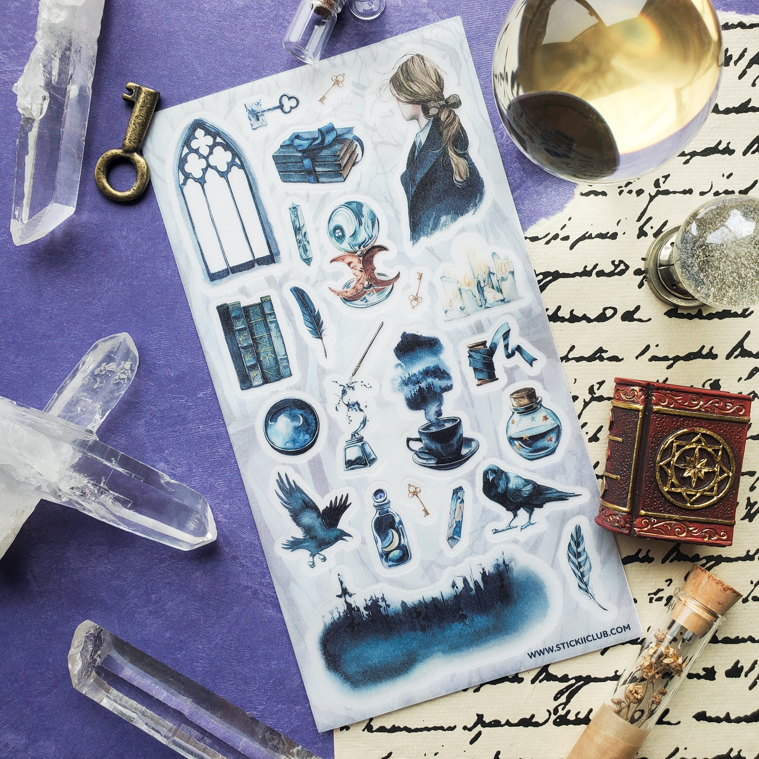 🌲🔑 Discover the secrets hidden within a mysterious castle in the woods with this intriguing sheet. From skeleton keys to jars of the night sky, get ready to create your own mystery on your pages!