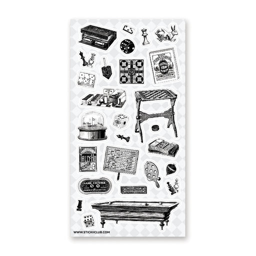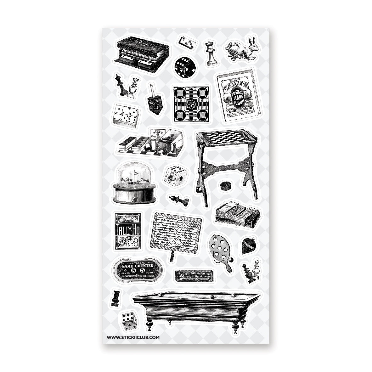 🎱 Are you ready to play? Step into a vintage game room with this intriguing sheet full of antique treasures. From a classic chess set to a pool table, there’s no shortage of fun to be had with this unique collection.